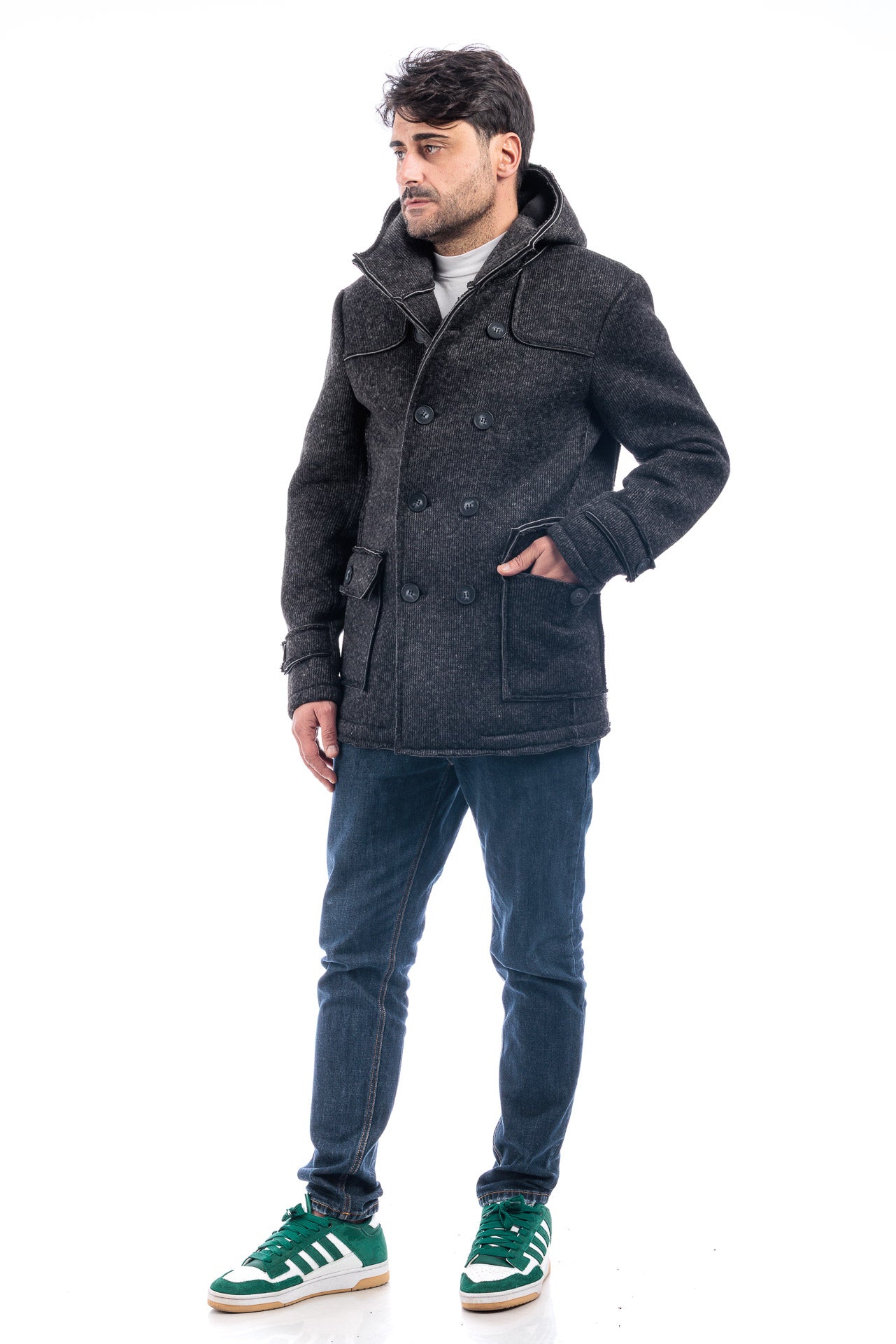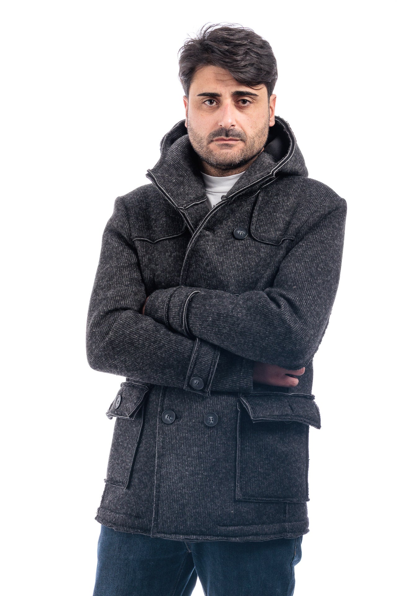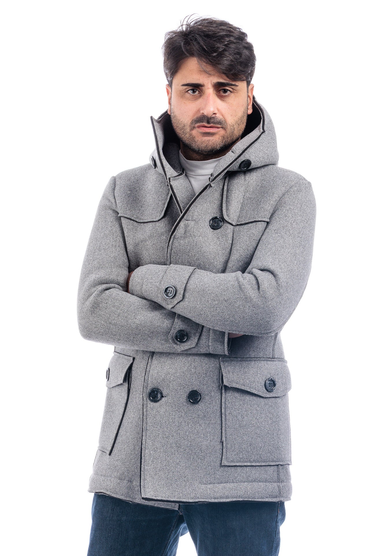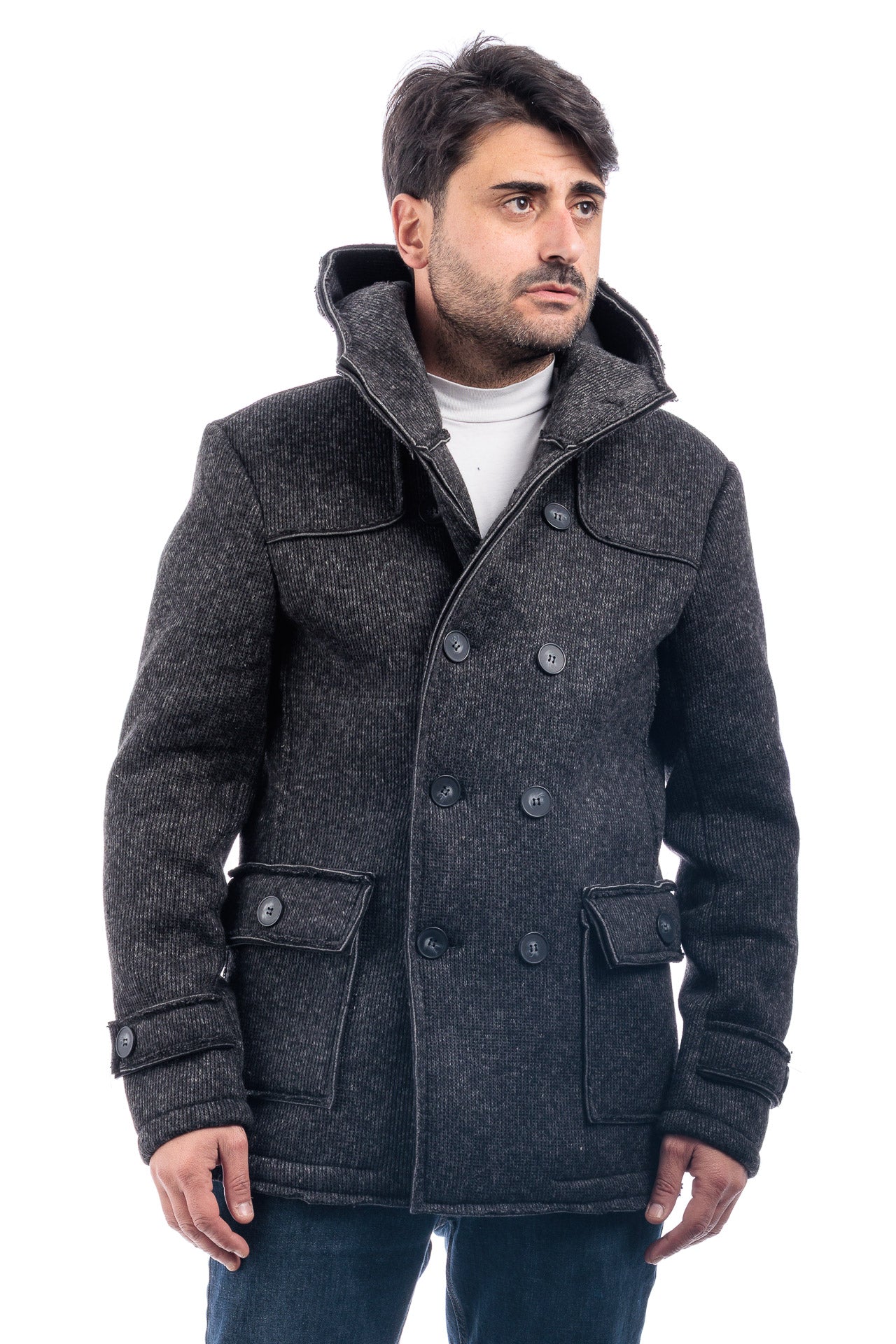 Cappotto Doppiopetto Cappuccio Uomo